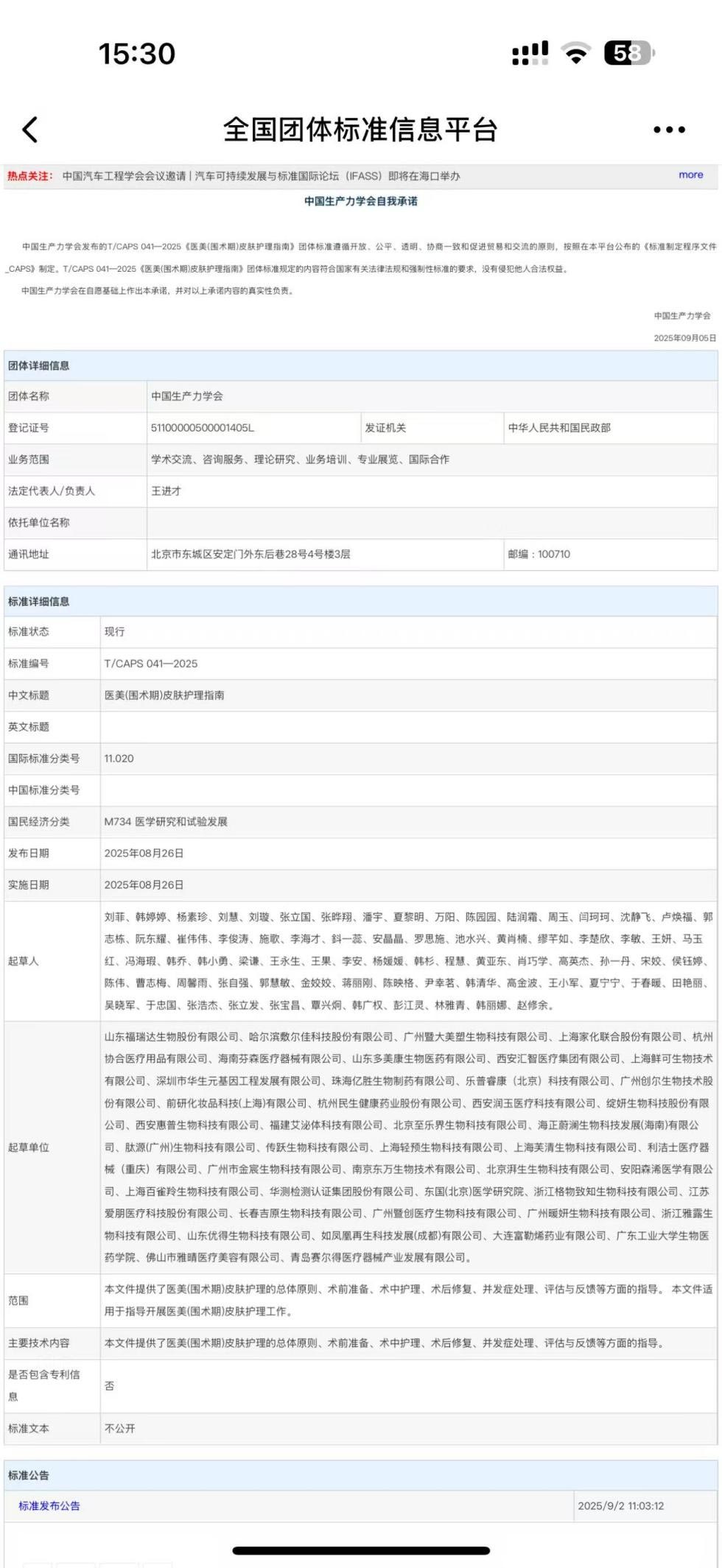 Vào ngày 26 tháng 8 năm 2025, tiêu chuẩn nhóm “Hướng dẫn chăm sóc da trong thẩm mỹ y tế (Giai đoạn chu phẫu)” (số tiêu chuẩn: T/CAPS 041 - 2025), do Hiệp hội Năng suất Trung Quốc và một số công ty hàng đầu trong ngành cùng soạn thảo, bao gồmCông ty TNHH Phát triển Công nghiệp Thiết bị Y tế Thanh Đảo Saildar, đã chính thức được phát hành và triển khai. Sự kiện này đánh dấu một bước tiến quan trọng trong việc tiêu chuẩn hóa ngành thẩm mỹ y tế của đất nước tôi và cũng tạo động lực mạnh mẽ cho sự phát triển của Công ty TNHH Phát triển Công nghiệp Thiết bị Y tế Thanh Đảo Saildar.